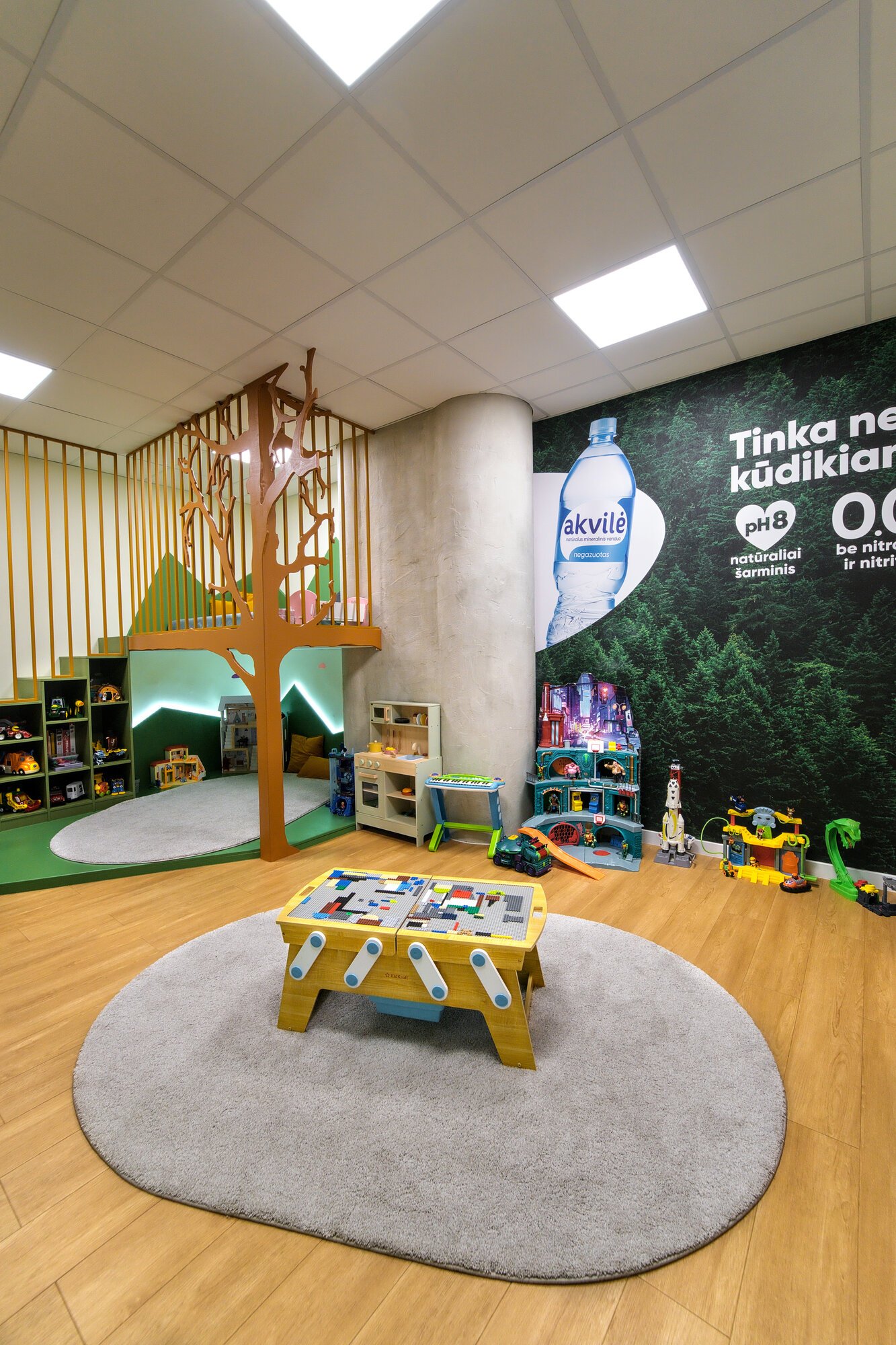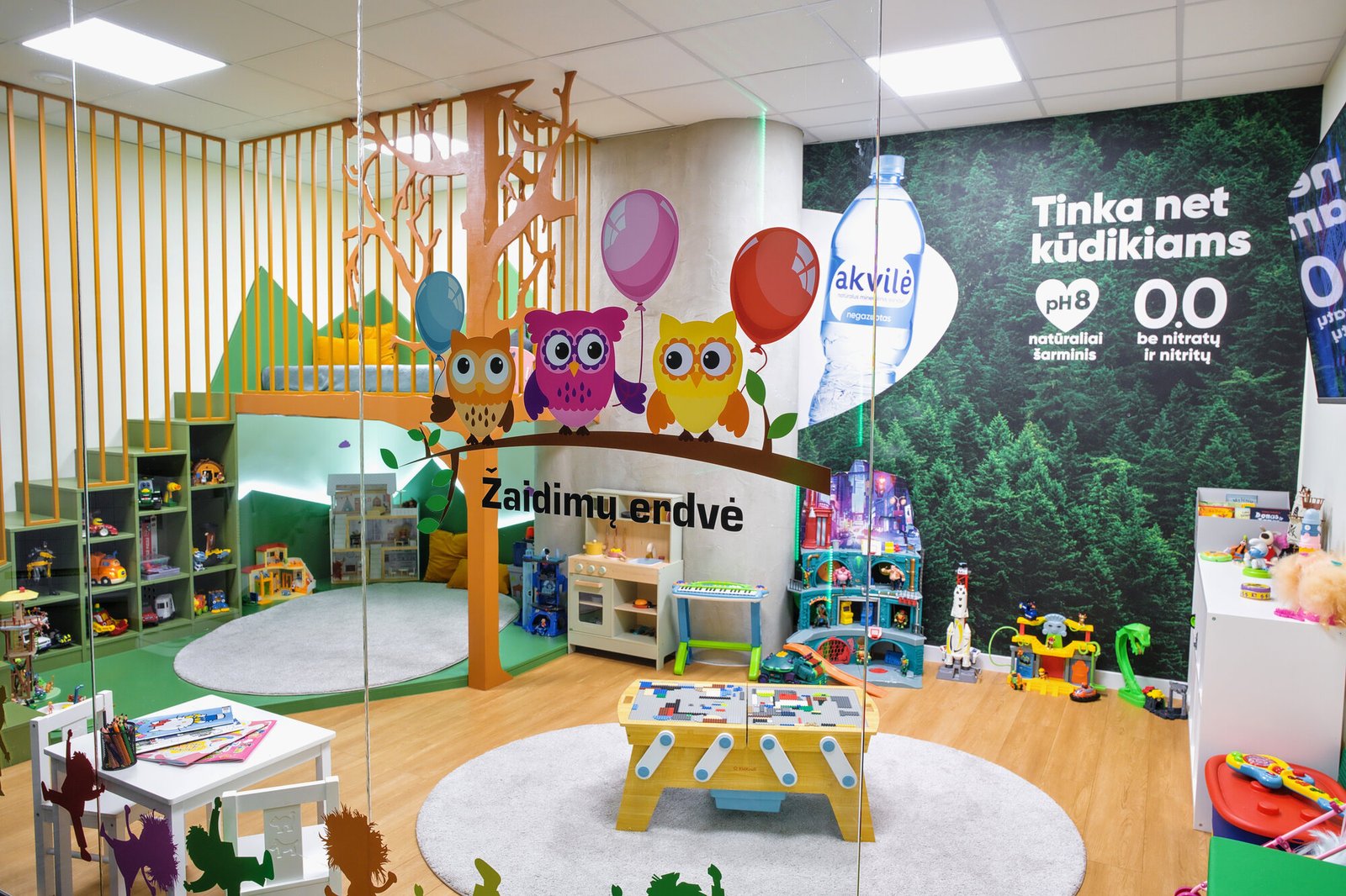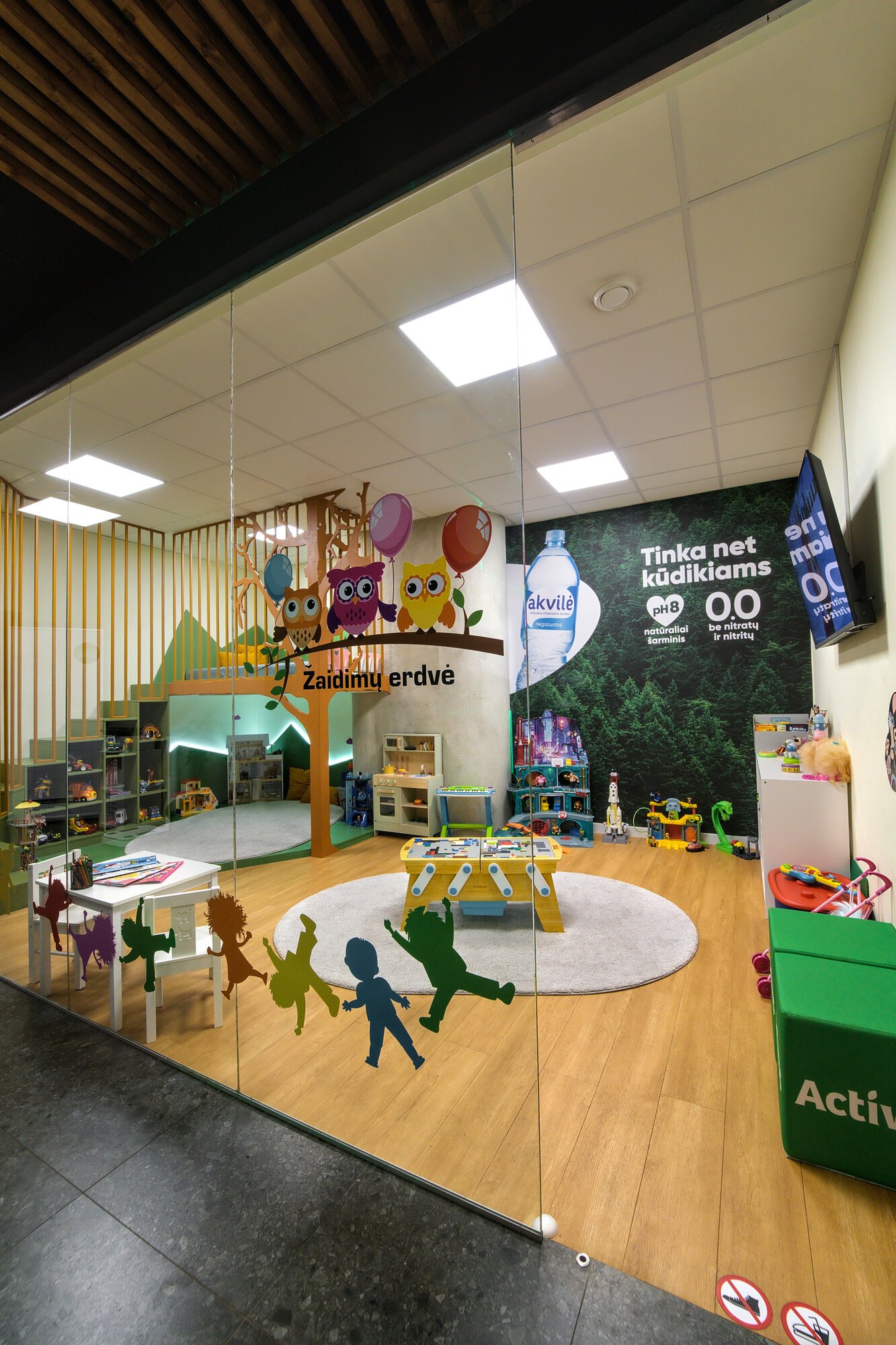 Vaikų žaidimų erdvė yra orientuota į 4+ metų vaikus.
